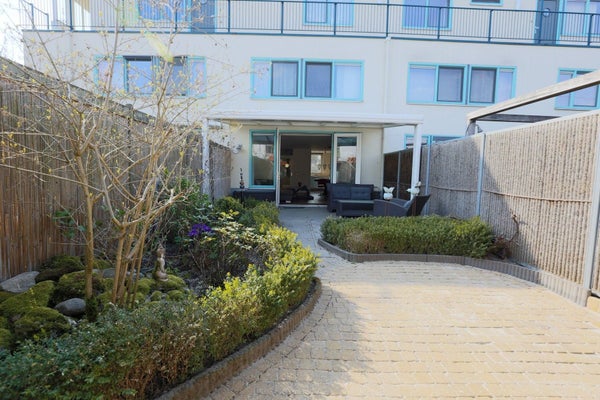 Het afwerkingsniveau is meer dan netjes en de maisonnette wordt gestoffeerd aangeboden. De vloer op de begane grond is van warm bruin hardhout en op de eerste verdieping ligt laminaat in een soortgelijke kleurstelling. De moderne keuken is voorzien van een 6-pits gasfornuis, vaatwasser, grote koelkast en veel kastruimte.