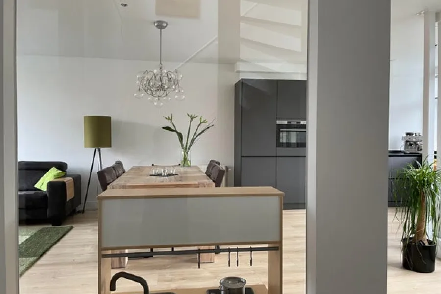 Every room contains lightning, curtains and there is a washing machine installed. Free parking in front of the appartment.