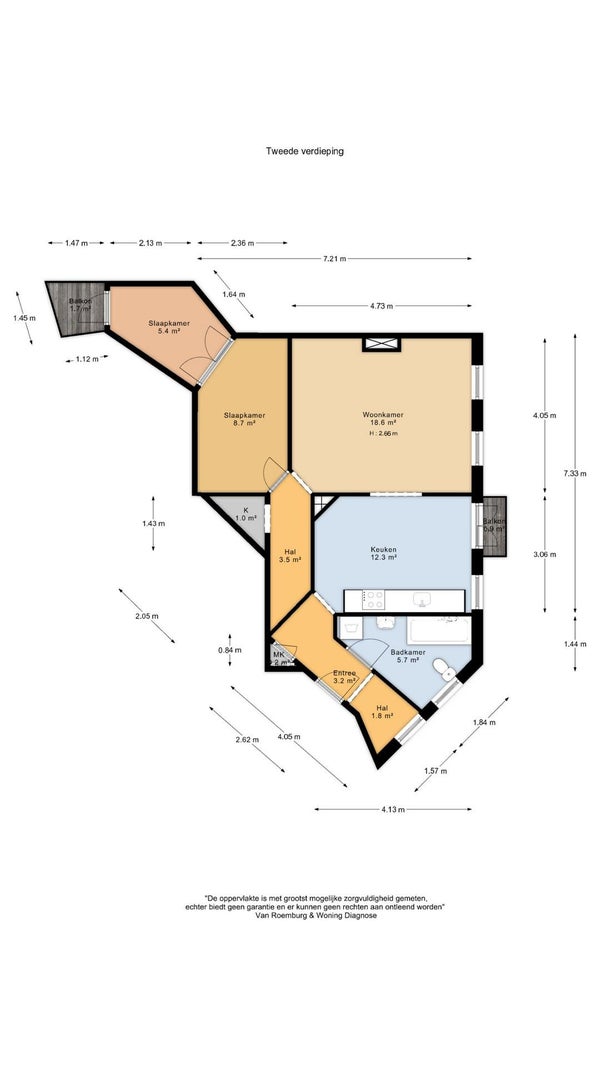 From the main entrance, two short flights of stairs lead you to the apartment. The hallway provides access to all rooms.