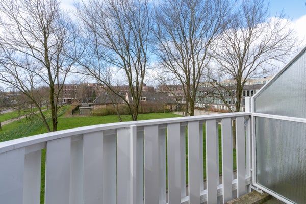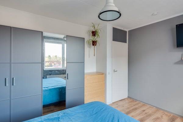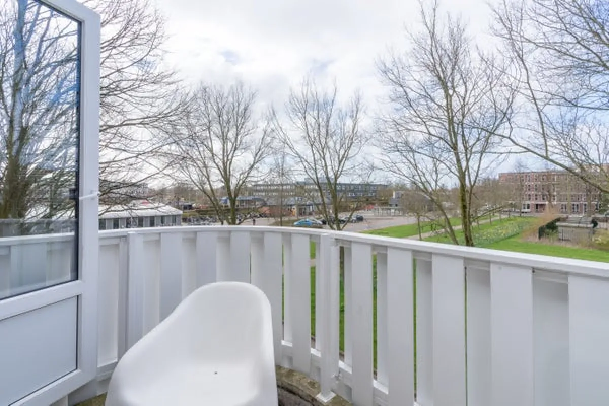 And the apartment itself? A wide view, a wonderful balcony on the southwest to drink a glass of wine in the afternoon sun and spacious and bright rooms. You immediately feel at home when you enter. The warm laminate floor immediately provides an attractive entrance. From the entrance you also walk into the luxuriously tiled bathroom, equipped with a floating toilet and a fountain. Take the next door and you will enter the bright bathroom. To take a nice shower after a long day of work. And then the bedrooms. Which one you choose really doesn't matter. Both are nice, spacious rooms. A wonderful place to sleep and wake up with a view over the cozy courtyard. Want to spend an evening on the couch or watch TV, have a nice dinner with friends or family? You will not miss a conversation while cooking with the open kitchen! A nice extra is that you directly walk into the balcony from the living room. Enjoy the evening sun, let in the fresh breeze ... it's all possible with this beautiful apartment! Do you like to cycle into the city? Or do you just have a lot of stuff? You have your own large storage room on the ground floor. Here you can easily store your bike and many things.