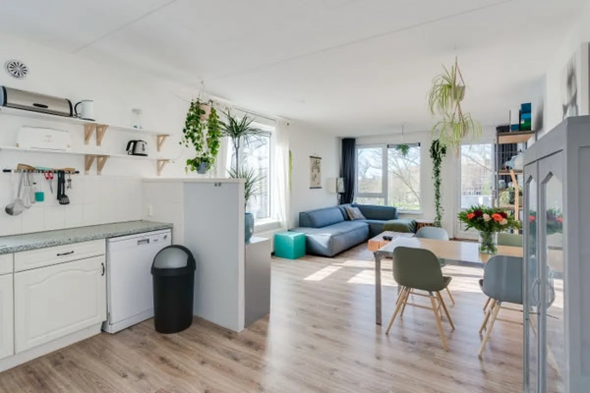 Want to plump on the couch after a day of hard work? Extensive cooking for you (and your partner) or your family? This bright 3-room apartment, on the 2nd and therefore top floor, offers you a warm and luxurious home. Take the train to work? Or visit friends or family? You will be at the NS station within a minute. But you also walk directly from the front door into the greenery in the area. The cozy, bustling city center is nice and closeby and you can walk to the shopping center "Winkelwaard" with all the handy stores you could wish for.