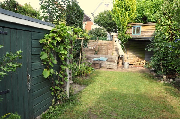- Garden: Front garden (with trampoline and bike shed) and deep back garden (with shed and treehouse), with rear access through a path between the houses