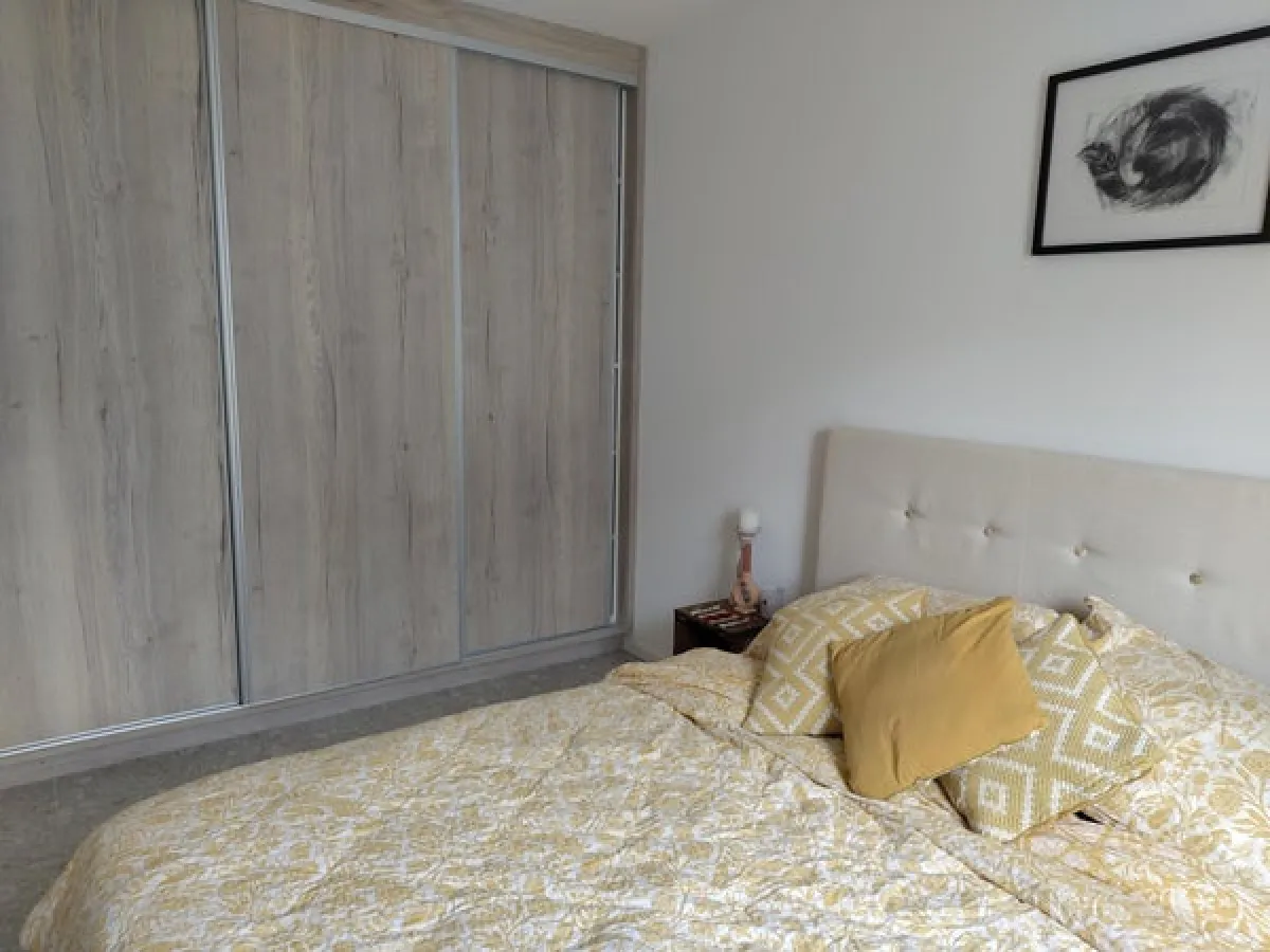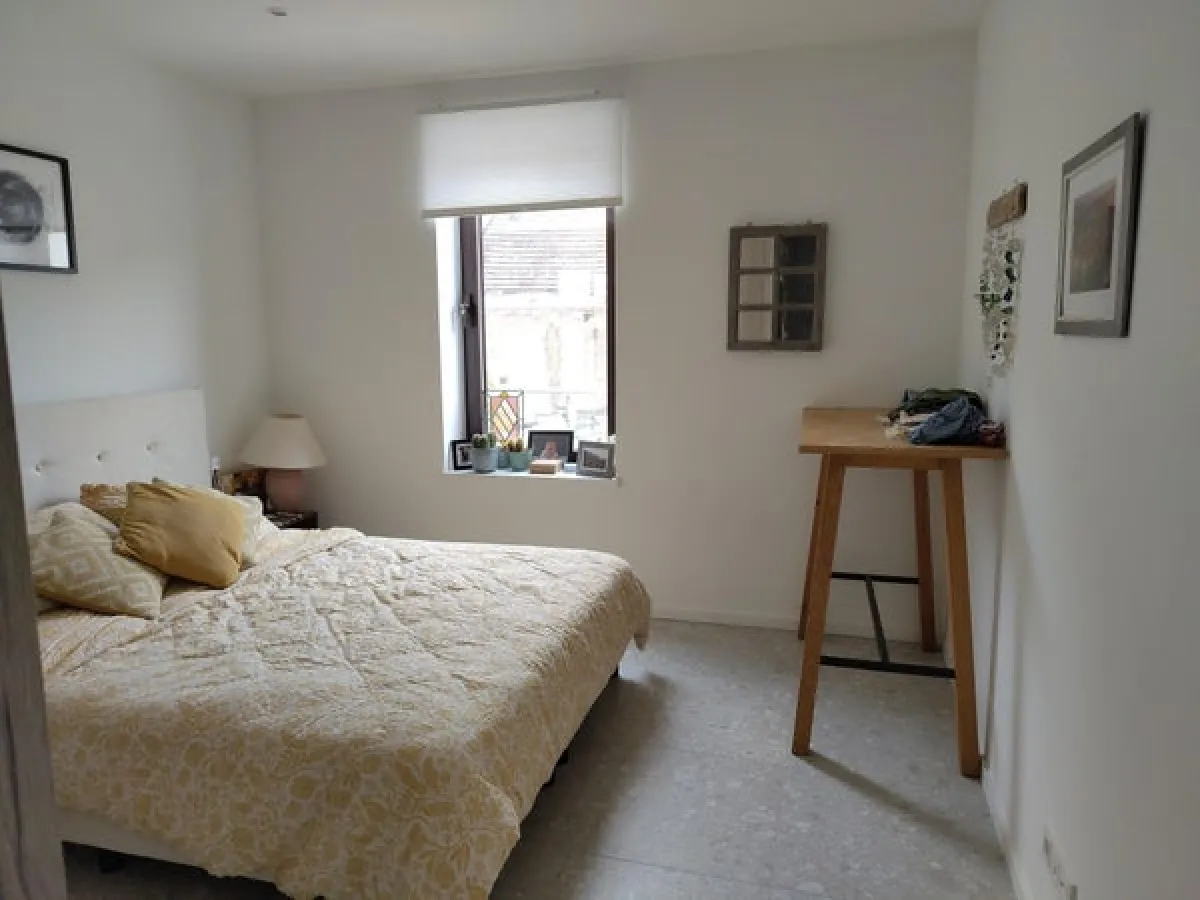 Slaapkamer: kledingkast (+/- 3m) met verlichting, en tv aansluiting