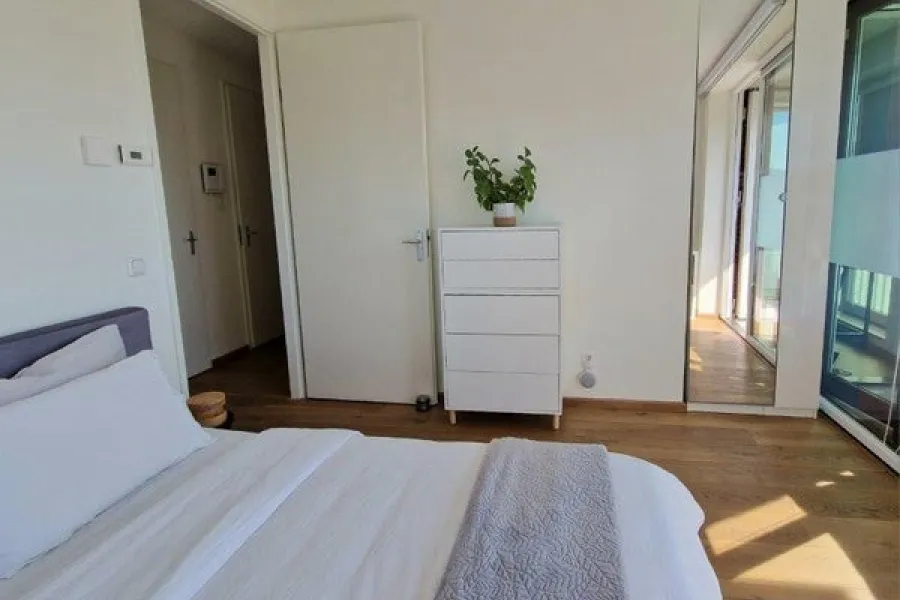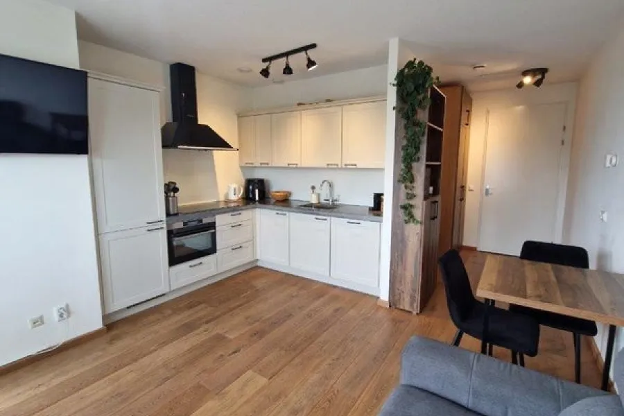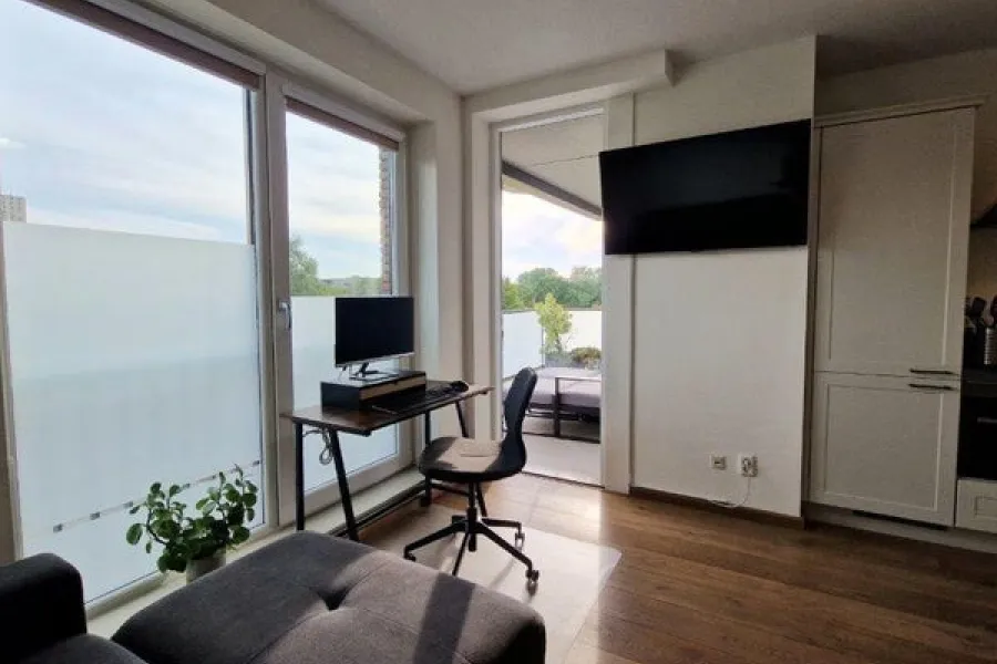 Design: High-end 1-bedroom apartment with an efficient layout, high-quality wooden floor, custom-made furniture to maximize storage space, TV, premium bed and mattress, and high-end kitchen and bathroom appliances. Ideal for a single student or a student couple ensuring comfortable living, especially with a separate storage room.