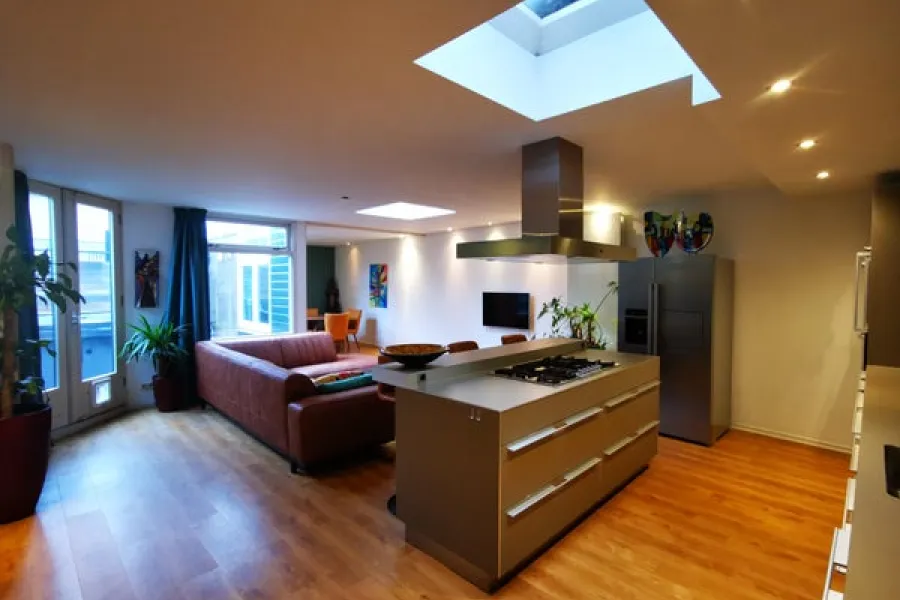 Luxe, zeer ruime Bulthaup-woonkeuken met kookeiland en veel licht, onder andere via twee lichtkoepels. De zonnige tuin ligt op het zuidwesten en is bereikbaar via brede openslaande tuindeuren. Royale badkamer met dubbele wastafel, extra grote douche, apart ligbad en toilet. In 2020 is het appartement vrijwel volledig vernieuwd, waaronder de badkamer en de slaapkamer met meer dan genoeg ruimte voor een werkhoek. Omdat de woonkamer/keuken ontzettend groot is, is het mogelijk om een extra slaapkamer te creëren. In de brede hal is een diepe inbouw (kleding(kast) gesitueerd, een inbouwkast met wasmachine en droger en een inbouwkast als berging. De woning is in 2020 ook volledig geschilderd en voorzien van een strak gelegde pvc en laminaatvloer. De woning wordt volledig gemeubileerd verhuurd.