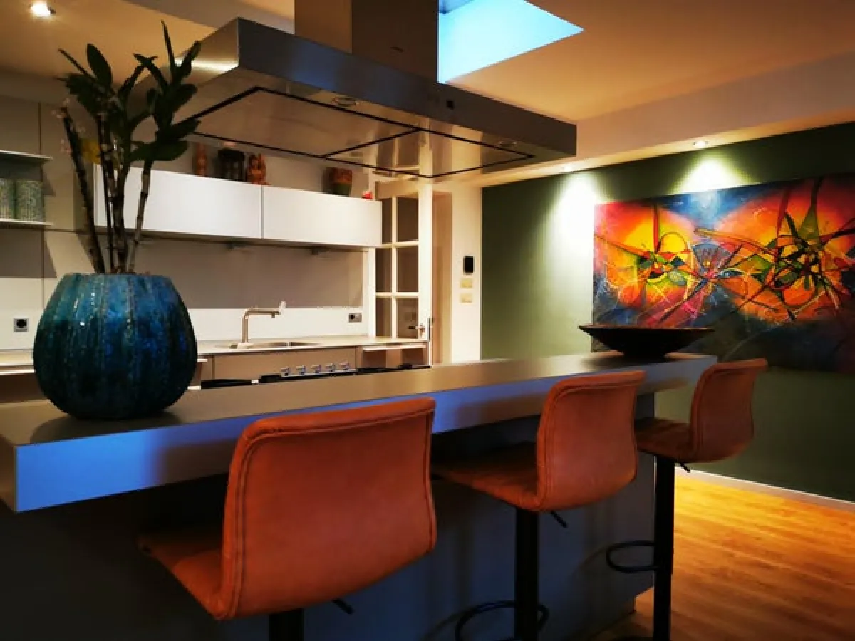 Luxurious, very spacious living room with open Bulthaup-kitchen with cooking island and two skylights. The sunny garden is located on the southwest. The bathroom is very spacious with a double sink, extra-large shower, separated bath and toilet. The apartment is completely renovated in 2020. The master bedroom has enough space for an office corner. The livingroom is so big, it's possible to create an extra bedroom. The hall offers a built-in wardrobe, built-in closet with washing machine and dryer and a built-in closed for storage. This apartment is completely furnished.