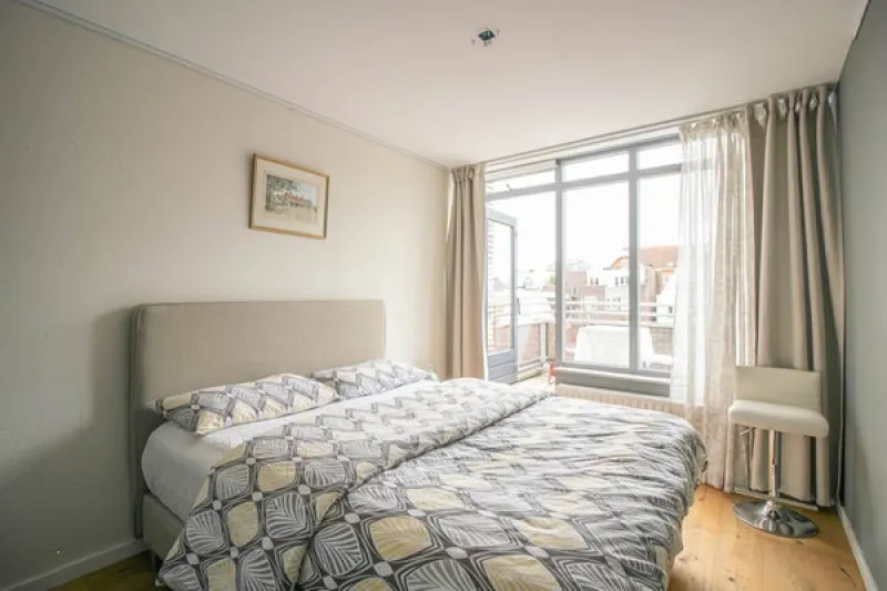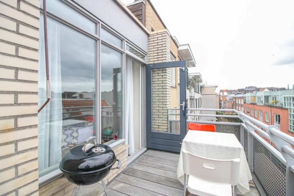 Bright and spacious top floor 3 room (2 bedrooms) apartment in a quiet residential street in the charming popular and historic neighbourhood Jordaan from the cusy shops of the '9 small streets', with a spectacular 14 m² balcony overlooking Amsterdam’s skyline. This 66m² apartment(2 with upper score) is located on a stone\'s throw from the 9 streets and Elandsgracht with numerous local shops, restaurants and galleries.