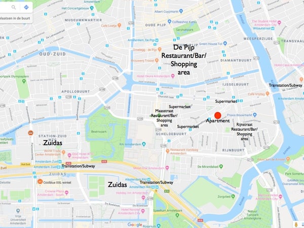The apartment is located in the ’Rivierenbuurt’, in the Rooseveltlaan and close to ’De Pijp’, with closeby several supermarkets, butcheries, bakeries and restaurants.