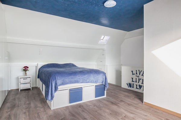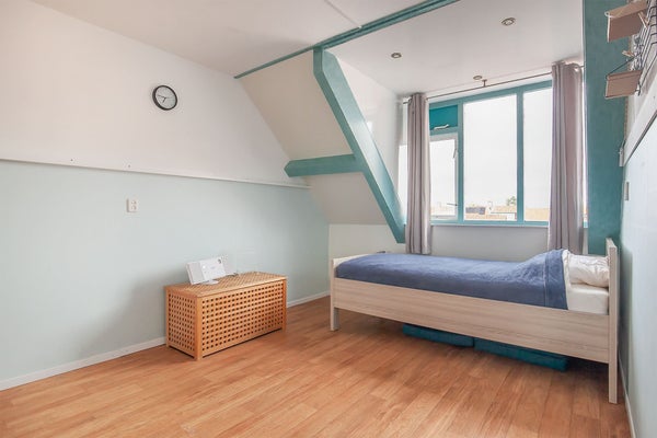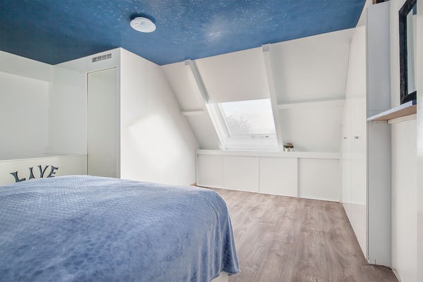 Strak afgewerkte slaapzolder met vaste bergruimte, dakraam en toegang tot de aparte stook-/wasruimte alwaar de CV combiketel Remeha HR 2019. De gehele etage is wederom voorzien van een nette laminaatvloer.