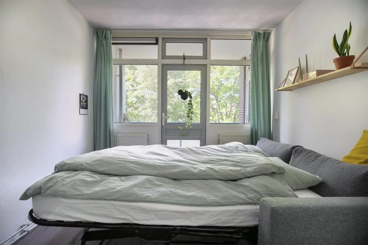 Dit heerlijke appartement is gelegen in een groene wijk. Binnen 10 minuten lopen bent u al bij het Agnetapark. Het Centraal Station bevindt zich op 5 fietsminuten evenals de supermarkt die op 5 minuten loopafstand ligt. De rondwegen A13 en A4 zijn binnen 10 minuten bereikbaar.
